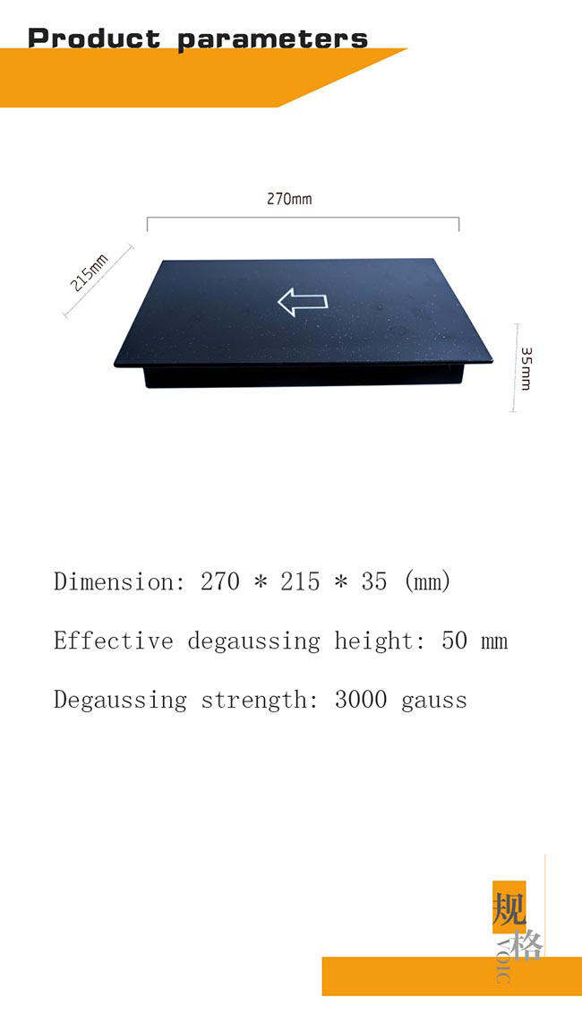 Notice Proceeding: Compound magnetic strip, tape and easy-to-be magnetized articles should be far away from demagnetization board to avoid magnetization.