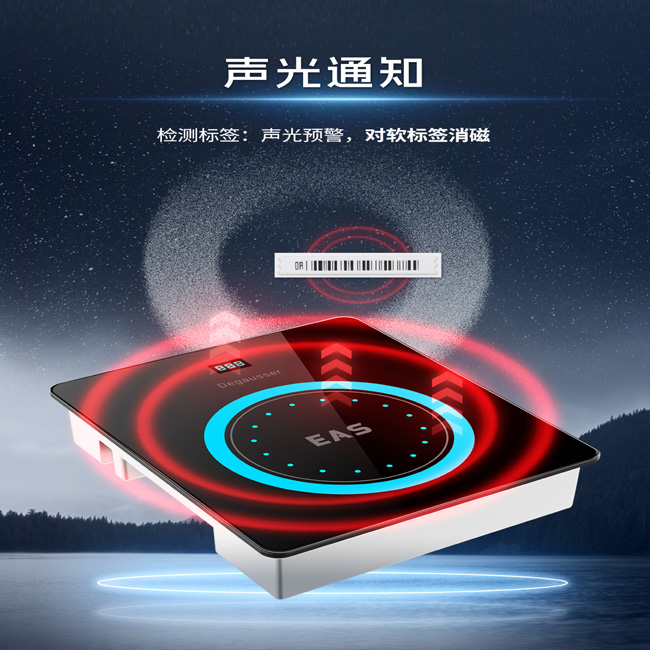 使用方法:將軟標(biāo)簽置于面板上方有效范圍內(nèi),聲光預(yù)警提示,“滴”聲長鳴后,拿開標(biāo)簽,消磁完畢